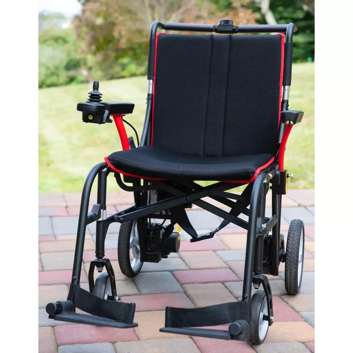 Introducing the Feather Power Chair, the lightest power wheelchair on the market, weighing only 33 lbs. The days of searching for the best ultra lightweight power wheelchair are over. The remarkable features include exceptional foldability, collapsing into a single piece for easy storage and transportation. With a top speed of 4 mph and a range of 11 miles per battery charge, it offers both power and endurance. The Featherweight Electric Wheelchair provides optimal comfort and comes with a 1" seat and back cushion, padded armrests that can flip up, a seat belt, and anti-tippers. Designed with convenience in mind, it is airline approved with its removable lithium battery. With a weight capacity of 250 lbs, this foldable and light electric wheelchair offers a compact solution for effortless mobility.